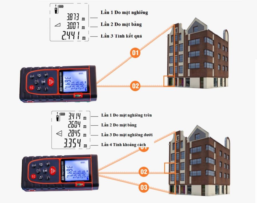 - Thực hiện đo khoảng cách, đo diện tích , thể tích của vật chỉ bằng một thao tác bấm chuyển đổi chế độ trên thiết bị đo